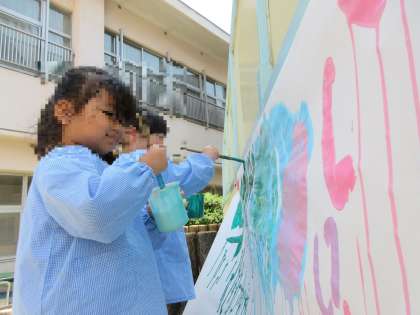 「おもしろい!」「絵の具が垂れると雨みたい!」
