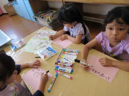 お礼に手紙を一生懸命書いていました。