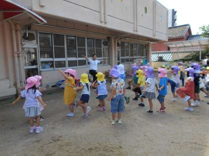 今日はみんなで『ワイワイうんどうかい』という体操をしました。