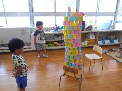 紙コップも、子どもたちにかかれば素敵なおもちゃになります。