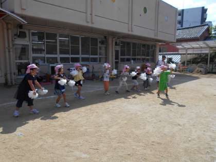 ほかのクラスのお友達を真剣なまなざしで見つめ、応援していました。