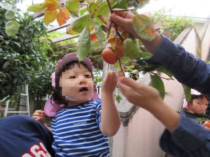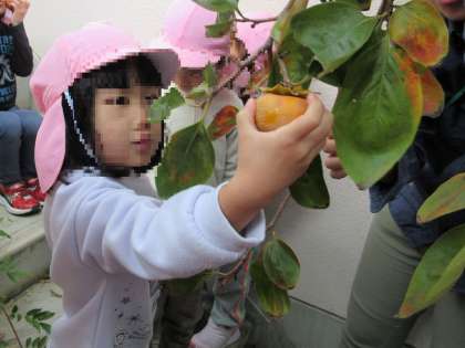 11月19日 柿の収穫をしました 公開日 2024/11/21 更新日 2024/11/21 園生活の様子 味原幼稚園の裏庭には、立派な柿の木があります。 今日はみんなで柿の収穫をしました。 「ぐるぐる回してとるよ」と担任の先生が話をすると、しっかり柿を握り、一生懸命回転させて収穫していました。 「つるつるだ〜」「おいしそう♪」 いいね(0)