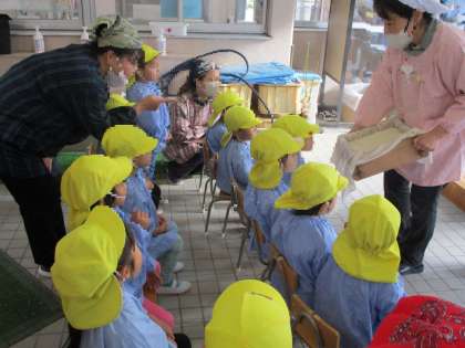 前日にすみれ組さんが洗ってくれたもち米を蒸すと、とってもいい香り!