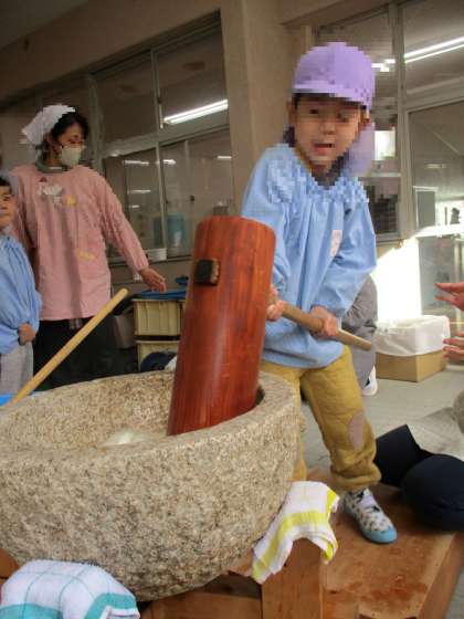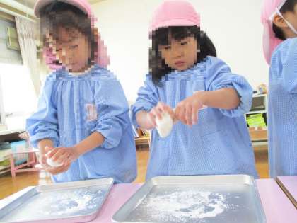 丸いきれいな鏡餅になあれ、と丁寧に丸める子どもたちでした。