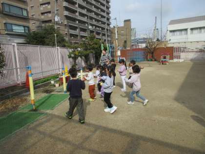 2月2日は節分。当日は日曜日だったので、幼稚園では3日に豆まきをしました。