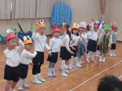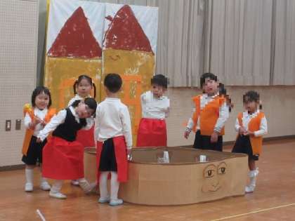 歌や合奏、劇遊びなどを、たくさんのお客さんの前で披露しました。