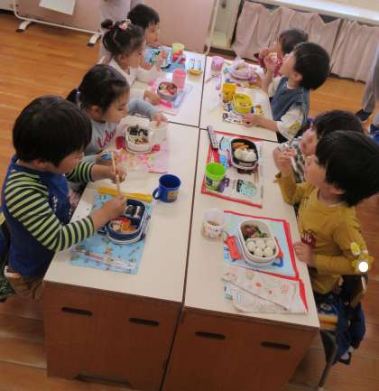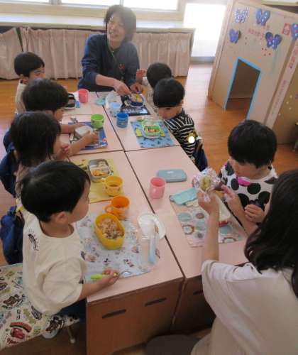 5月8日 はじめてのお弁当 公開日 2025/05/09 更新日 2025/05/09 園生活の様子 今日からたんぽぽ組のお弁当が始まりました。 朝から、遊んでいる時も 「何時になったら食べるの?」とお弁当を楽しみにしていました。 保護者の方が、つくってくださった愛情たっぷりのお弁当。 美味しかったね! 「ごちそうさまでした!」 いいね(0)