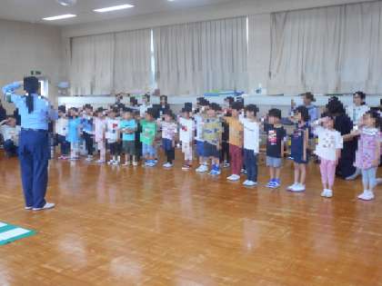 最後はおまわりさんの「敬礼」で、かっこよくあいさつをしました。