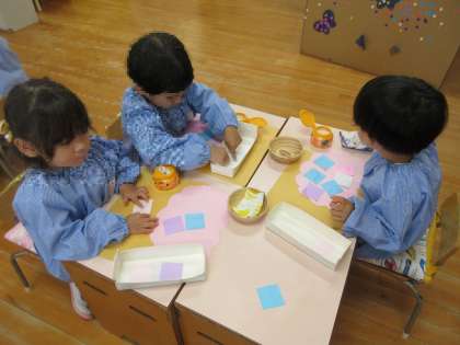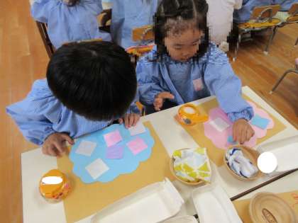 「もう一枚貼りたい!」とのりを塗ることを楽しんでいました。