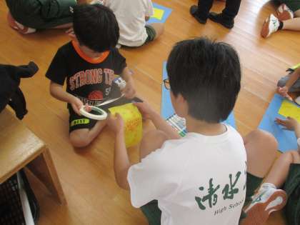 清水谷高校と幼稚園との交流で、たくさんのお兄さんお姉さんが来てくれました。