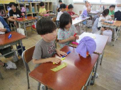 七夕の笹飾りの作り方を、小学校のお兄さんやお姉さんに教えていただきだきました。