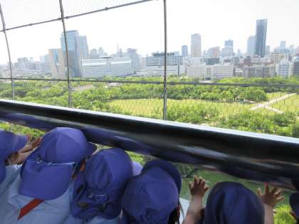年長組は、天守閣へ行き、上からみんなを見つけて大喜び。大きく手を振り、上から見える景色を楽しみました。