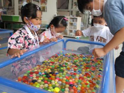 当日は『スーパーボールに隠れた文字探し』『風船運び』などのミッションゲームをしたり、花火やホタルを見たりしました。