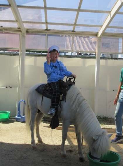 エサをあげたり、ポニーの上に乗ったり、抱っこしたり...
