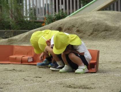 トンボやバッタになって、跳んだり走ったりして遊びましました。大好きなダンゴムシになって、かくれんぼもしましたよ。隠れる姿がとっても可愛かったです。