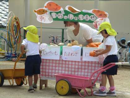 競技ではお家の方と一緒に、お買い物へ行きました。体を動かして遊ぶ楽しさを味わうことができました。