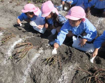 園外保育(芋掘り)に行きました! 公開日 2022/10/20 更新日 2022/10/20 園生活の様子 芋掘りに行ってきました! 土の中からなかなかでてこないサツマイモ.... 一生懸命掘って出てきたサツマイモに大喜び! 収穫の喜びや、土の感触を味わうことができました。 どんな味がするのか楽しみだね!! いいね(0)