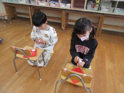 3学期が始まりました! 公開日 2023/01/18 更新日 2023/01/18 園生活の様子 1月12日、鏡開きをしました。 幼稚園の子どもたち、保護者の皆様、教職員...みんなの健康と幸せと願い、鏡開きしました。子どもたちは自分たちでつくった鏡餅に一人一人「元気に過ごせますように」「楽しいことがありますように」などと、願いを込めて、手で餅を開きました。 3学期が始まり子どもたちは、寒さに負けず元気いっぱい遊んでいます。 いいね(0)