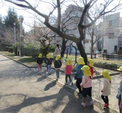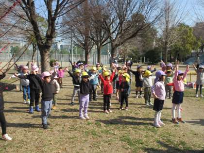 お別れ散歩 公開日 2023/03/02 更新日 2023/03/02 園生活の様子 真田山公園へお別れ散歩に行きました。 3クラスで行く、最後の園外保育です。 梅の花を見たり、体操や駆け足をしたりしました。 ふれあい遊びでは、年下の友達に優しく声をかける姿が見られ、異年齢の友達と一緒に遊ぶ楽しさを味わいました。 もうすぐ、修了式ですね。 すみれ組のお友達、残りの幼稚園生活も、楽しい思い出をたくさんつくりましょうね! いいね(0)