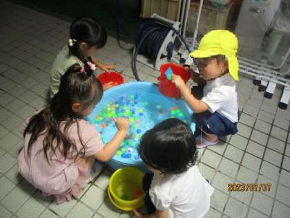 スーパーボールすくいや、ペットボトルシャワーを使って