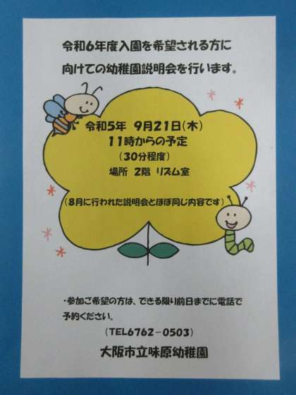 令和6年度入園を希望される方に向けての幼稚園説明会を行います。