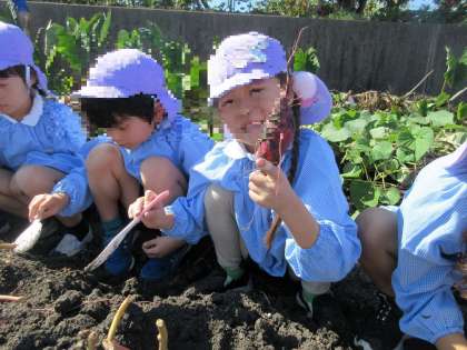 うんとこしょ、どっこいしょ♪ 公開日 2023/10/18 更新日 2023/10/18 園生活の様子 園外保育でいもほりへ行きました。 一生懸命土を掘ると、たくさんのおいもがでてきて 子どもたちは大興奮!収穫を楽しみました。 いいね(0)
