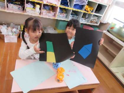のりでぺったん! 公開日 2023/11/08 更新日 2023/11/08 園生活の様子 丸、三角、四角の形を組み合わせ のりで貼って遊びました。 「なんだかおうちみたい!」 「先生見て!こんな形できたよ!」 楽しい声が聞かれました。 いいね(0)