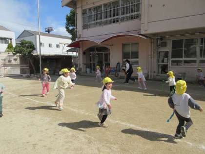たんぽぽ組は「しっぽとり」が大好きです。 お友達のしっぽをよく狙って、待て待て〜!!