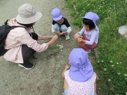 すみれ組とさくら組で、散歩に行きました。