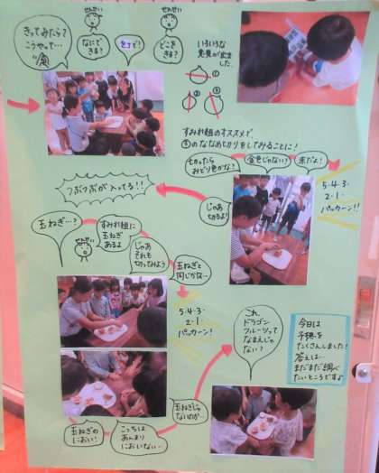 「タマネギと思う」→「幼稚園にあるタマネギと比べてみよう」