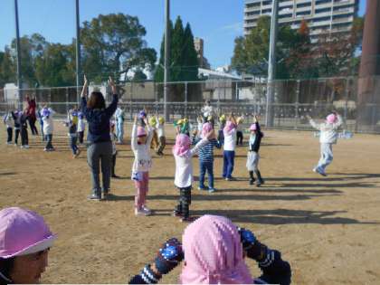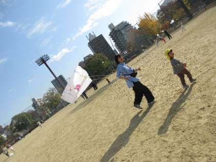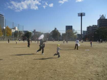 12月とは思えない暖かさの中、だいしんスタジアムSANADAYAMA(真田山野球場)で凧揚げをしました。