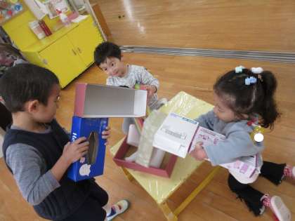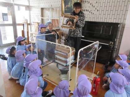 もちつき後の保育室では、杵を自分たちでつくり、もちつきごっこをする子どもたちの姿も見られました。楽しかったですね!