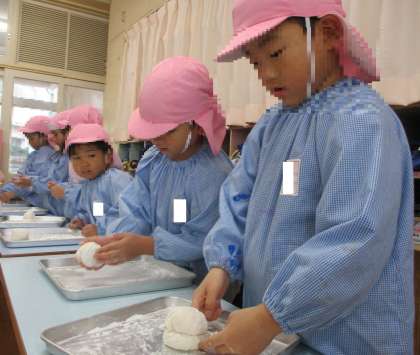 そのあとは「新しい1年を元気にすごせるように」と願いを込めて、鏡餅をつくりました。餅の手触りを楽しみながら、丁寧に丸めていました。
