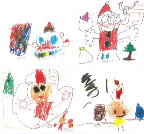 お部屋ではサンタさんとの思い出を絵に描いてみました。