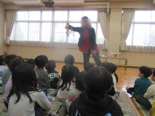 普段あまり目にすることのない、白い昆布やウラジロに「のり?」「はっぱ?」と首をかしげる子どもたち。「昆布!」「だいだい!」とお家で教えてもらったことを元気に答える子どももいました。