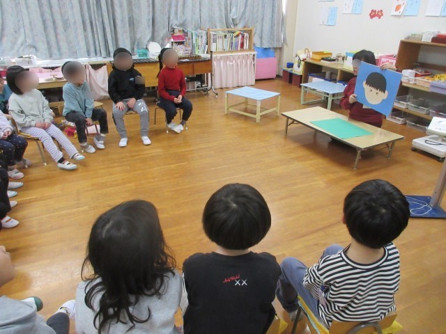 鼻水の正体はやっつけられたバイキン。鼻水をあちこちにつけないこと、鼻水をかむことを伝えました。