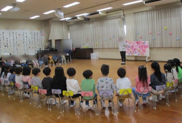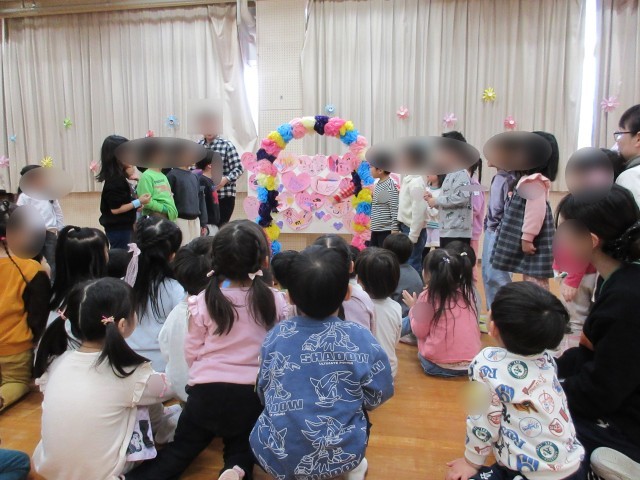 すみれ組からは、誕生会で使うアーチのプレゼントをもらいました。