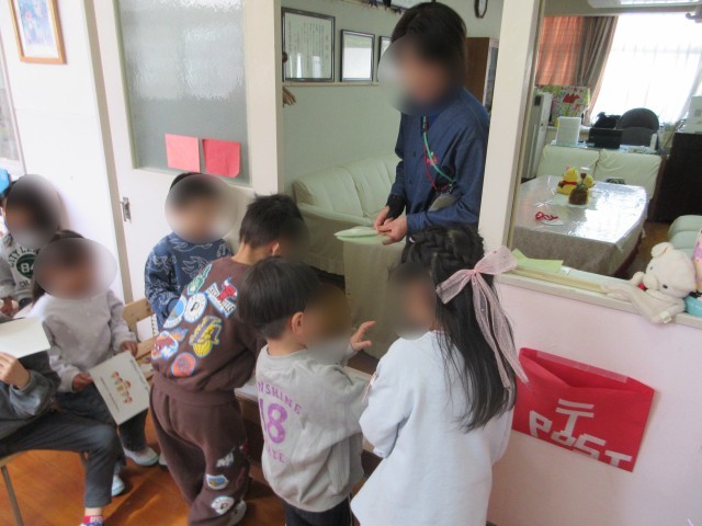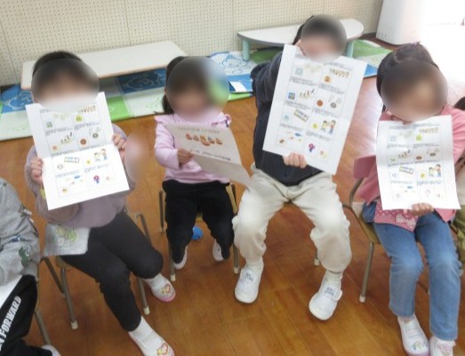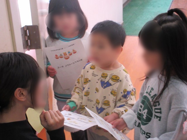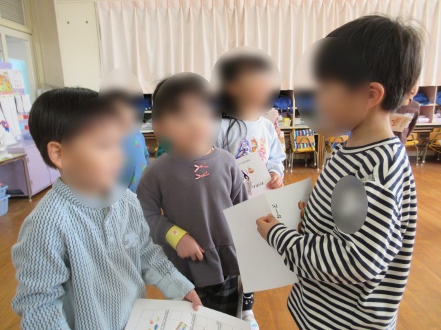 たくさん遊んだ後には、さくら組、たんぽぽ組からのプレゼントを渡しました。