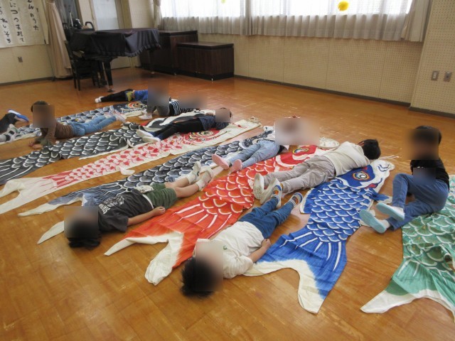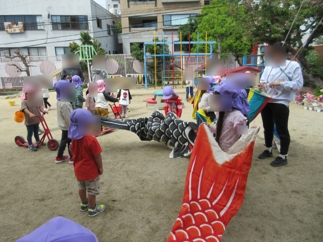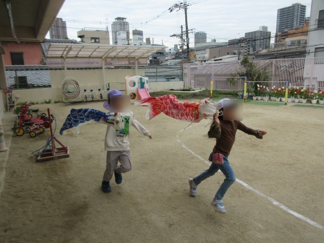 クラスの活動として、こいのぼりの大きさを比べたり、リレーや追いかけっこをしたりして楽しむ姿も見られました。