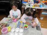 身近な素材を使って、製作を楽しんでいます。 たんぽぽ組は、きれいなモールやビーズ...