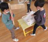 餅つきが楽しくて、「もっとしたかった」という子どもたちの声から、保育室でも餅つき...