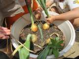 玉ねぎを収穫しました。玉ねぎのいい匂いがしました。「おいしそうだね」「スープに入...