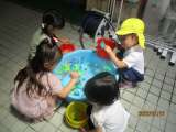 スーパーボールすくいや、ペットボトルシャワーを使って 水遊びを楽しんでいます。 ...