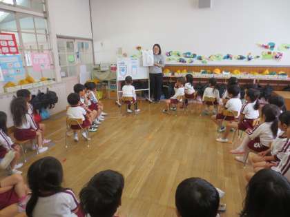 5月の体重測定を行いました。毎月測定をした後に、保健指導をしています。今月は「トイレの使い方」についてお話をしました。「幼稚園には、どんなトイレがある?」「座ってするところー!」「こうやってしゃがむところー!」など、身振りを交えて答えてくれる子どもたち♪トイレを使う時のお約束の話では、使い方を再確認!今後も、きれいにトイレを使ってくれると嬉しいです(*^^*)