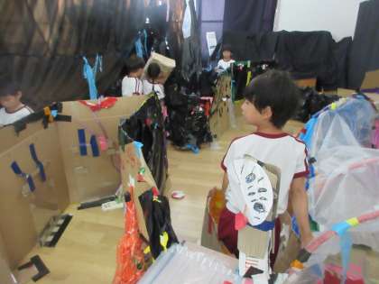 子どもたちは、普段と違う雰囲気に少しドキドキしながらも、「今日はいっぱいお客さんいるね!」「お化け屋敷に来てくださーい!」「イチゴジュースどうぞ!」といろいろな先生に話しかけて一緒に遊びを楽しんでいました(*^^*)