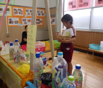 これまで3・4・5歳児で関わり合いながら好きな遊びを存分に楽しんできたことで、この日も異年齢の友達同士でお店屋さんでやりとりする姿や、一緒にお化けになって楽しむ姿などがたくさん見られました!