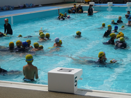 大江小学校の5年生とのプール交流をしました!(7/16)