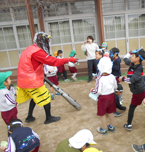2月3日は節分です。2日は大江幼稚園に鬼がやってきました!!強そうな鬼でしたが「鬼は外〜!福は内!」とみんなで豆まきをすると鬼も降参して帰っていきました。