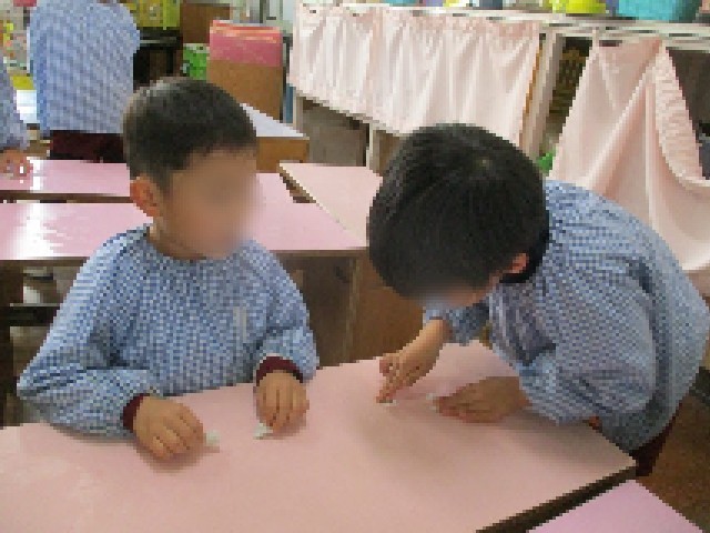 子どもたちが幼稚園の大掃除をしました。それぞれのクラスの保育室やロッカーだけでなく、3歳児はウッドデッキ、4歳児は園庭のおもちゃ、5歳児はリズム室と幼稚園全体の大掃除をしてくれました。雑巾についた汚れやおもちゃが綺麗になる様子を見て、掃除をする気持ちよさや新しい年を迎える気持ちにつながっていたように思います。