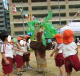 大江小学校の校庭をお借りして、運動会を実施しました。小学校の校庭に、たくさんの...